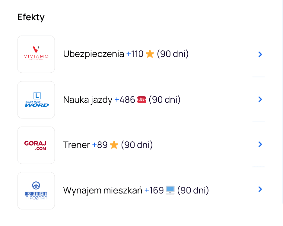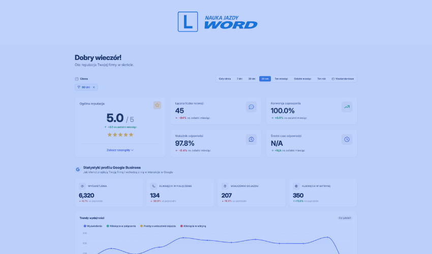 Dodatkowo analizuję, jak użytkownicy wchodzą w interakcję z wizytówką (połączenia, kliknięcia, trasy) i na tej podstawie wprowadzam zmiany. Celem jest zwiększenie liczby wartościowych kontaktów — czyli takich, które mogą realnie zakończyć się sprzedażą.