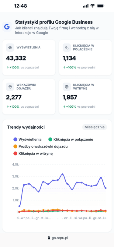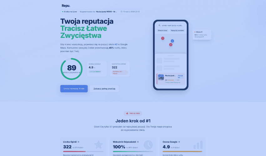 Repu.pl to platforma, która pomaga firmom zwiększać liczbę opinii, poprawiać reputację i zdobywać więcej klientów z Google Maps.